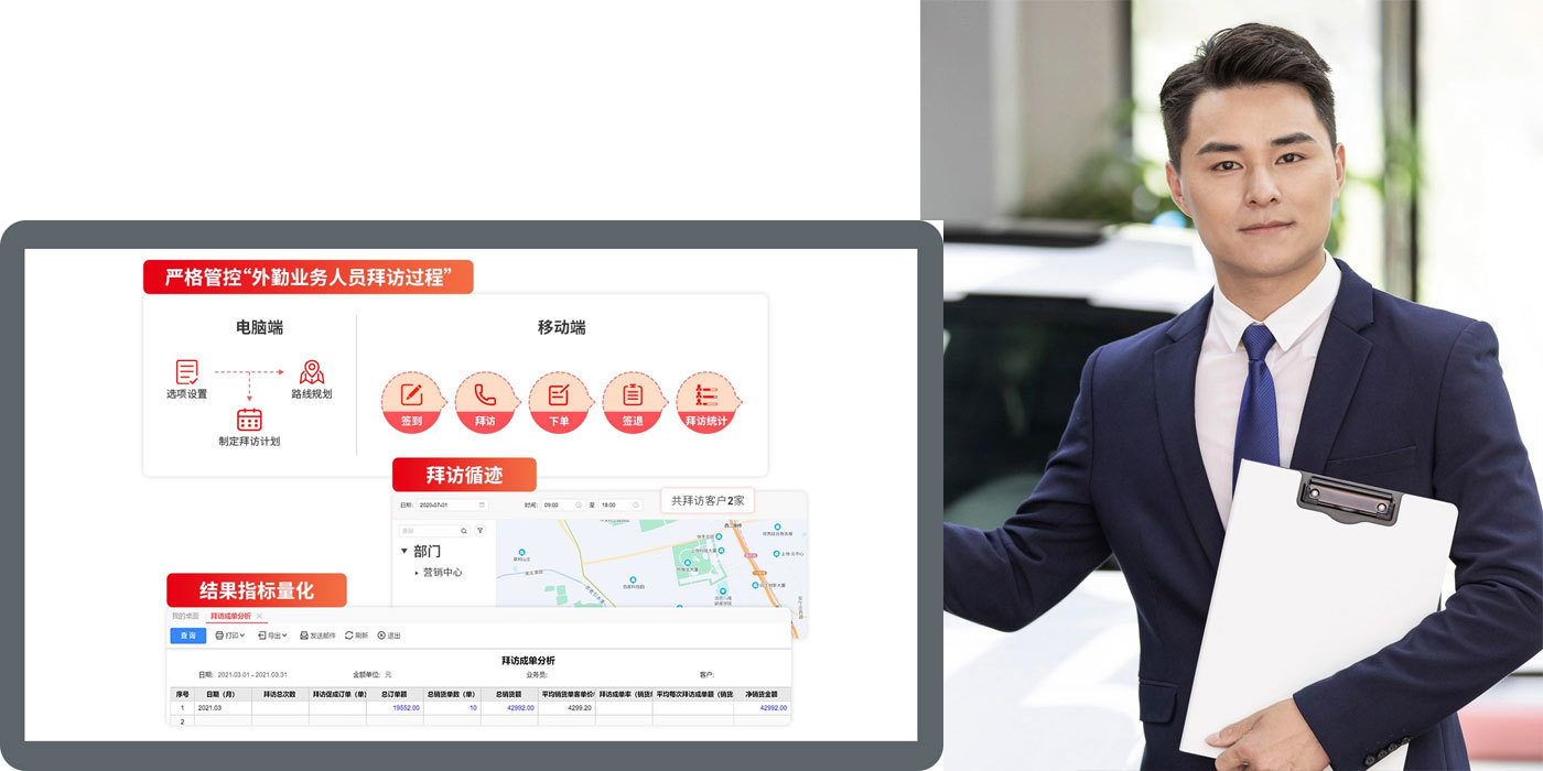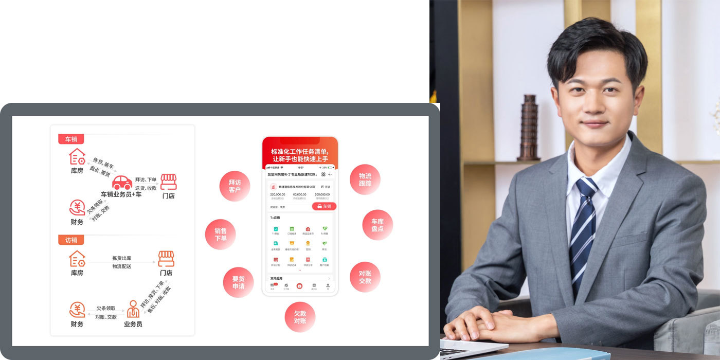 【跑店有计划】拜访客户有计划,车销访销过程有标准,手机端下单对账收款,工作更方便。